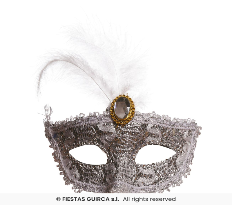 Biela maska s brošňou a perím