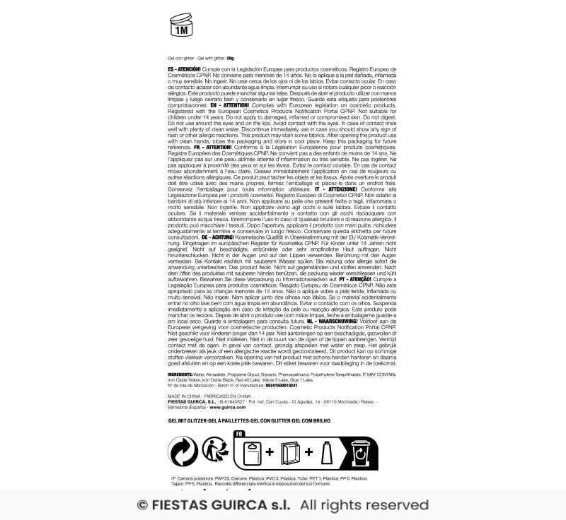 Flitrový gel v tubě. Obsah 20 ml. Vhodné pro karnevalové a slavnostní líčení.