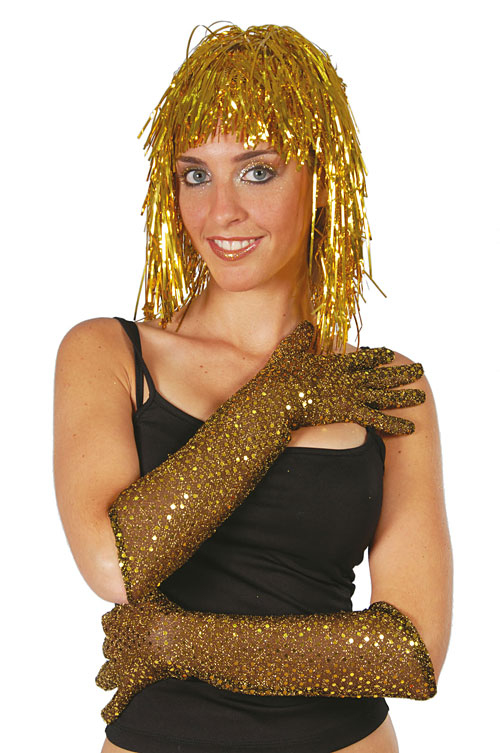 Dĺžka rukavíc 22 cm. Rukavice metalického vzhľadu.