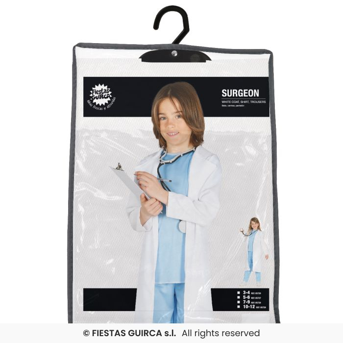Kostým obsahuje blúzu, nohavice, čiapku a opasok.