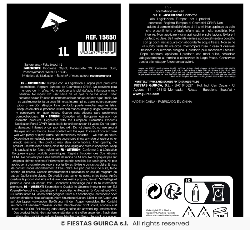 Krv vo spreji - obsah 60 ml. Nie je vhodná pre deti do 14 rokov. Nepoužívajte v blízkosti očí. Neprehĺtať! Krv môže zanechať škvrny na niektorých textíliách.