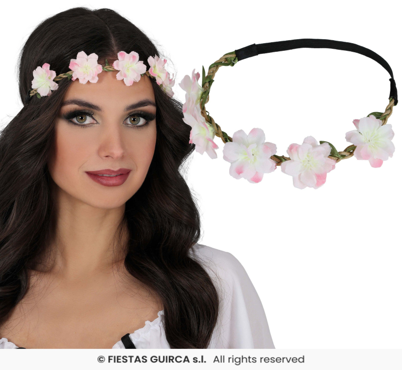 Květinová čelenka s růžovými květy
