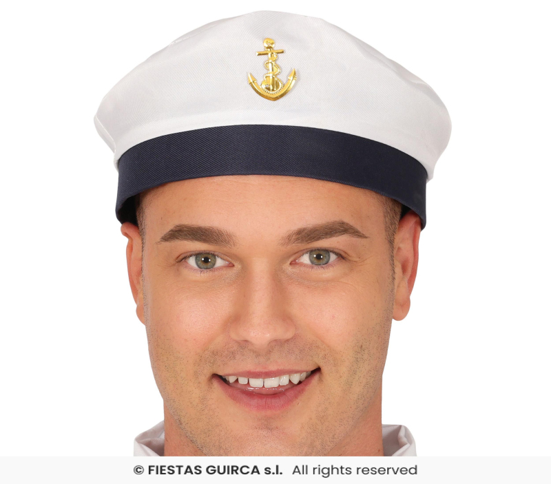 Velmi pěkná bílá námořnická čepice. Velikost - obvod hlavy 56 cm.