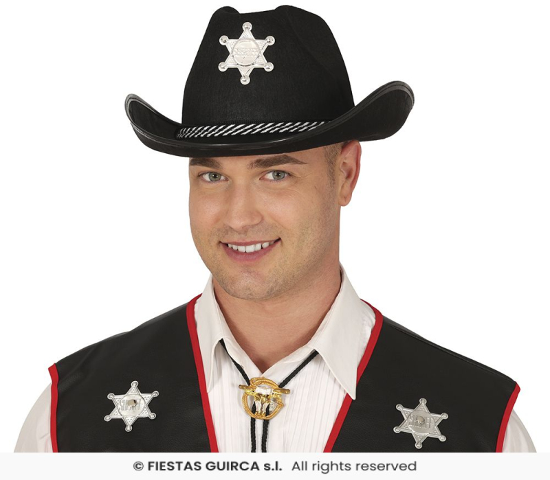 Kovbojský klobúk so striebornou hviezdou a strieborným lemom
