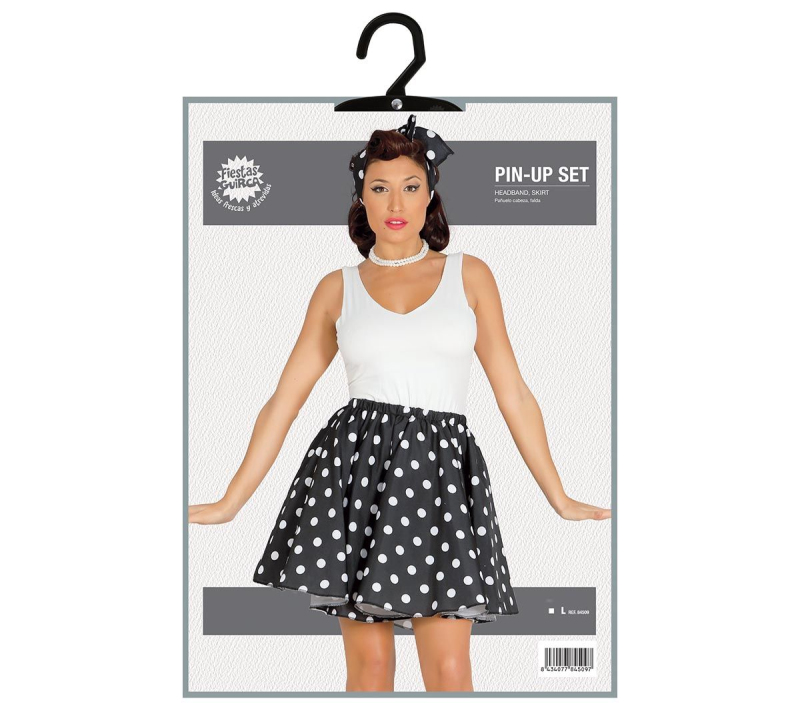 Pásek na hlavu, košila, korzera a sukně. Velikost 42 - 44 - hruď 99,5 - 103, pas 76 - 82, boky 106 - 109 cm.