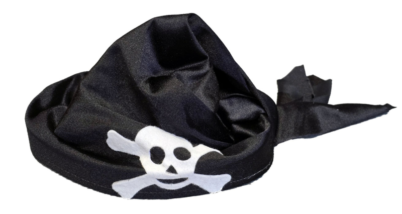 Klobúk pirátskeho korzára so zlatým lemovaním a motívom lebky. Max. veľkosť klobúka je 57 cm.