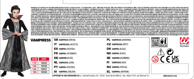 Licenčný výrobok. Overal s maskou. Rozmery - dĺžka od ramena po pätu 115, dĺžka rukáva 45, hruď 80 a rozkrok po podlahu 56 cm.