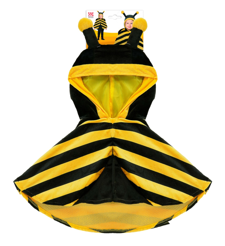 Detský kostým čarodejnice tvorí ružovo - čierne šaty ozdobené čiernymi netopiermi a klobúk . Metla nie je súčasťou kostýmu