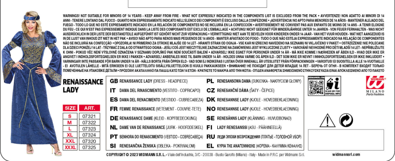 Kostým sa skladá zo zamatových šiat. 100% polyester. Vhodné pre veľkosť S, M, L.